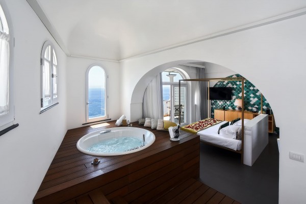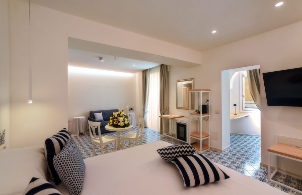 Large spaces, refined coastal-style furnishings and Vietri majolica tiles create a cosy and relaxing atmosphere.