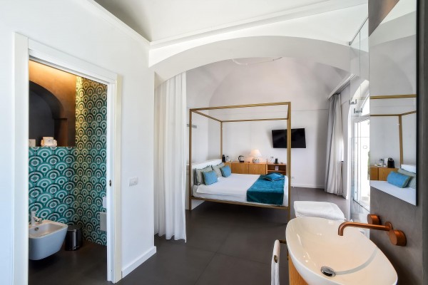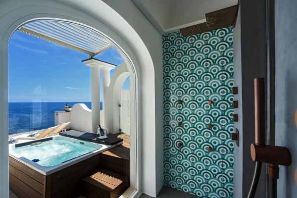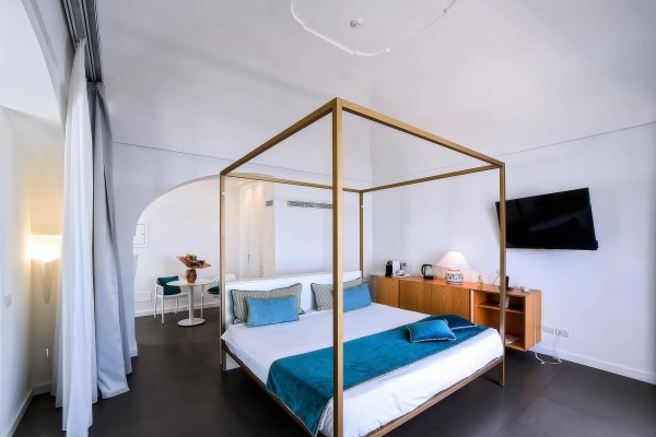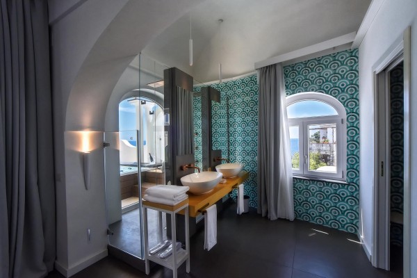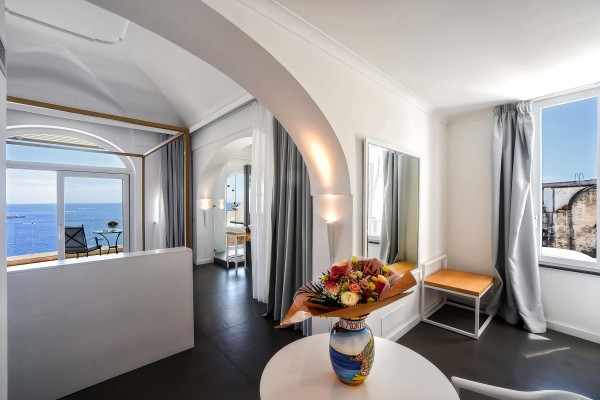 Strategically located, Executive Suite offers breathtaking panoramic views of the sea and the historic centre of Positano. The hotel's largest private terrace is the ideal place to admire unforgettable sunsets and relax in the Jacuzzi. Inside, elegance and functionality blend into a single environment. The large sleeping area and the open-plan bathroom with a shower overlooking the SEA offer maximum comfort.