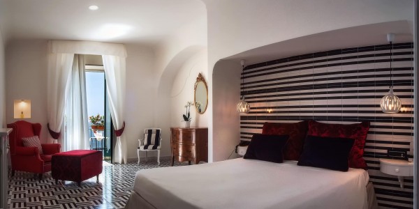 Ampi spazi, arredi raffinati in stile costiero e maioliche vietresi creano un'atmosfera accogliente e rilassante.Il bagno spazioso con doccia e il balconcino privato offrono momenti di puro relax, con una romantica vista sul mare