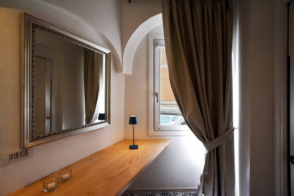 Sobrietà, raffinatezza ed eleganza caratterizzano gli spazi di questa camera.